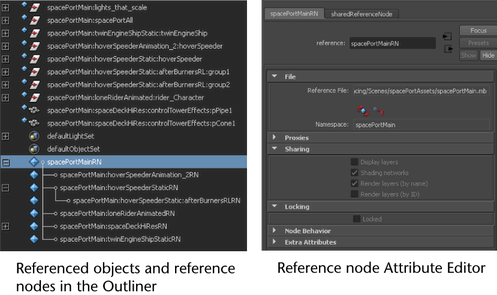 After you create a file reference, it is loaded in the scene and its reference node appears in the