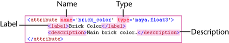 <attribute name='attribute1' type='maya.float3'> <label>Display Name</label> <description>Your description here.</description> </attribute>