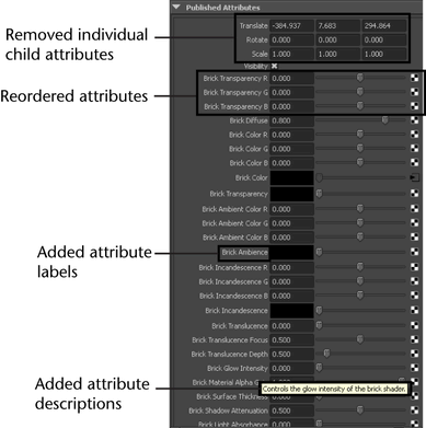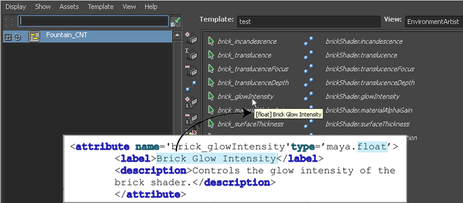 You can modify an asset’s template file to change the asset interface. These changes can be seen in Maya when the asset View Mode is set to Use Template and the View Name is set to None.