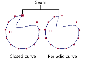 In contrast to a periodic curve, a closed curve can have a sharp corner at the seam because it lacks the extra spans.