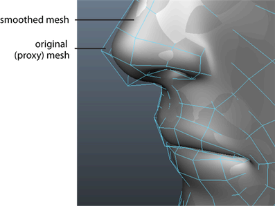 The meshes are linked by their construction history, so any edits you make to the proxy's shape or topology are also reflected on the smoothed version of the mesh. You can reshape and animate the original mesh (the proxy) and see the results on the smoothed mesh.