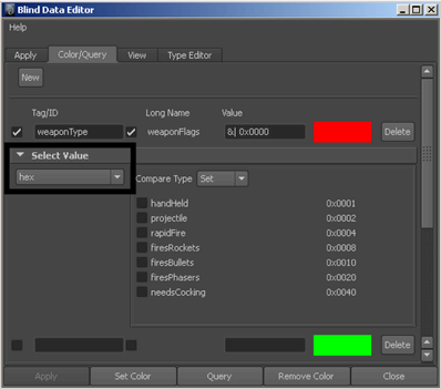 You can also color and query with the hex type if the blind data type selected consists of hex data.