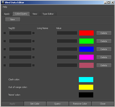 To use a row in the Color/Query operation, turn on the check box to the left of the Tag/Id field. Disabling a row is useful if you do not want to use a particular type or value but may want it later.