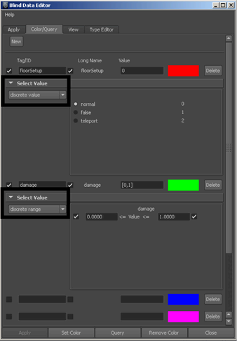 Select this option to color or query a range of values for a particular type.