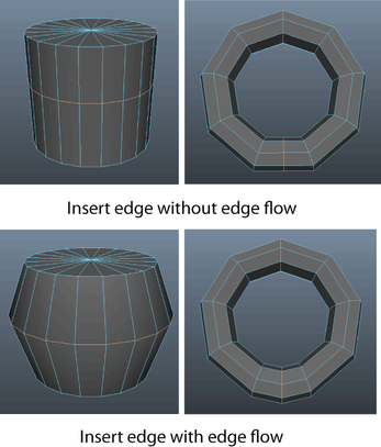 Lets you insert edge loops that respect the curvature of the surrounding mesh. This option is disabled by default, but you can toggleEdge Flow in the marking menu (Ctrl + Shift + right-click).
