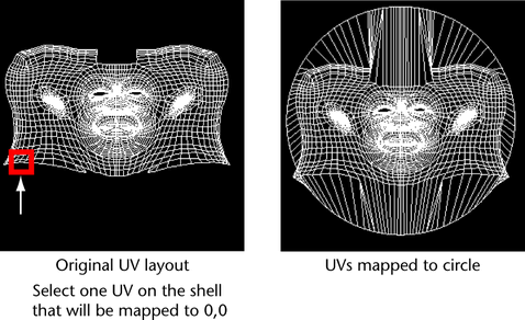 When you use Map Border you can move the UVs on the border of a UV shell out to the edges of the 0 to 1 texture space range (square), or in a circle inscribed within the 0 to 1 range. Mapping UVs so they use the entire 0 to 1 texture range is useful when you need to maximize the texture space required for a texture map.