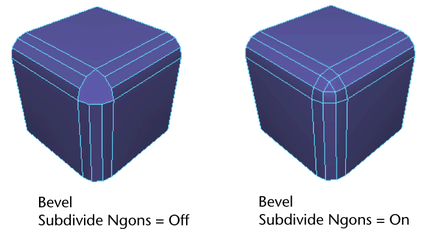 Note: Beveled edges dynamically update when you adjust an object's attributes. For example, existing beveled edges on a cube update as you make changes to any of the