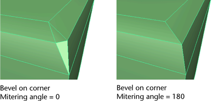 Controls how two intersecting beveled edges get joined when an intersecting non-beveled edge is involved. You can specify whether you want the recently beveled edges to be mitered or not by setting the