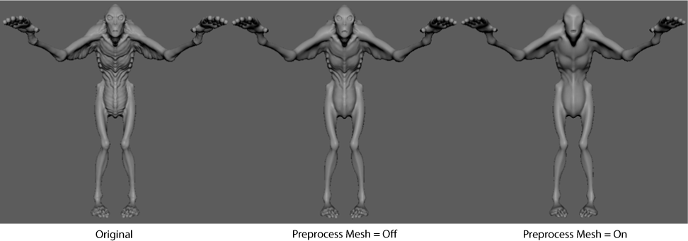 Preprocess Mesh optimizes dense input meshes to speed up and increase the success of the Retopologize operation.