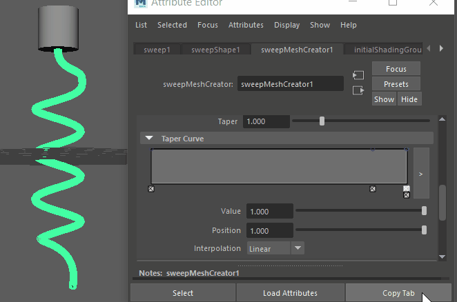 - The Taper effect is linear, which means the thinning of the corkscrew will occur equally through the curve, which isn't realistic for the pointed spike, so set