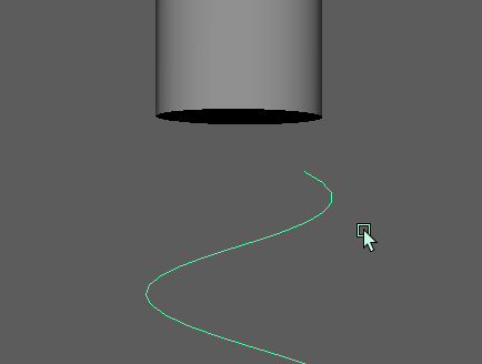 - Select the vertex at the top of the spiral, and translate it until it aligns to the center of the cylinder. This provides the straight section at the top of the corkscrew where it joins the body.