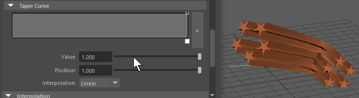 - Add control points in the Taper Curve ramp UI to create a variable taper along the length of the sweep path. A multiplier of the attributes