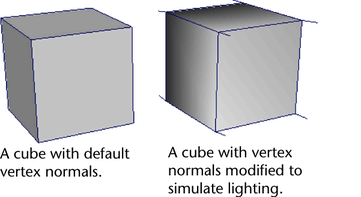 Normals have a direct effect on the appearance of shaded polygons. When you unlock a previously locked vertex normal, Maya automatically recalculates the vertex normal for the faces based on its default normal calculations.