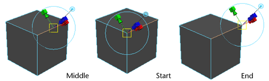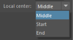 Selecting an item from the Local center pull-down menu repositions the manipulator along the selected edge. Depending on which item you select, all subsequent transforms derive from that position. The default is middle.