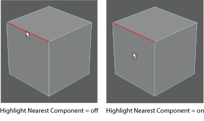 When on, highlights the closest component to the cursor before you select it. By default,