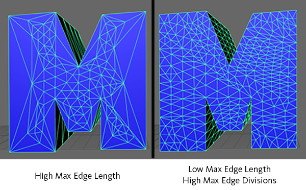 Splits all edges on the front and back faces of the Type mesh that are longer than the length specified here in world units. Mainly used to control the density of the cap subdivisions. Default value is 1.