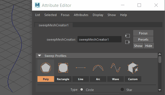 Taper Curve section, adjust the ramp so that the tip of the mesh thins to a point.