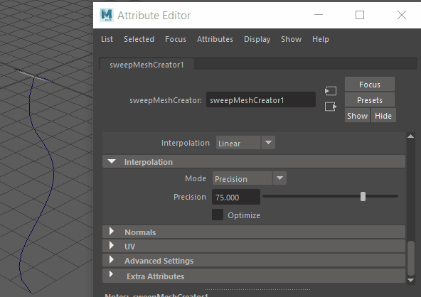 - Play back the animation. The mesh grows like a tube but the curve has angles.