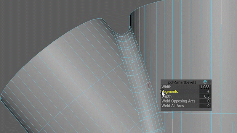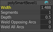 The polySmartBevel node is created when Smart Bevel is applied to selected edges. It appears in the object history and lets you modify bevel parameters in the Attribute Editor or Channel Box.