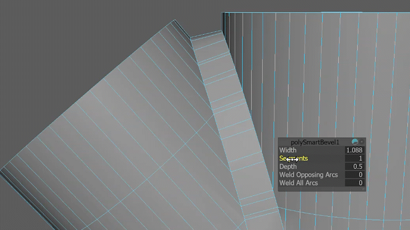 Weld Opposing Arcs merges arc edge loops that directly oppose each other across the bevel surface, reducing duplicate arc pairs while preserving the overall arc structure. Use this option when bevel operations create paired arc loops that overlap but do not require full arc simplification.