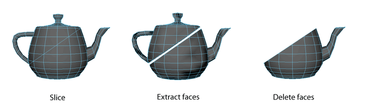 Multi-Cut Tool to slice polygons along a straight plane, and then extract or delete faces above or below the cut.