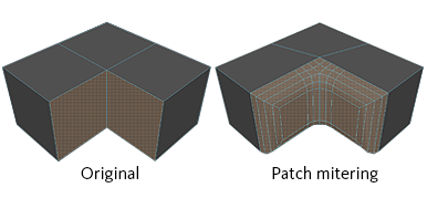 Similar to Patch, but produces an arc in the corners rather than connecting bevel edge vertices to non-bevel edge vertices.