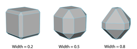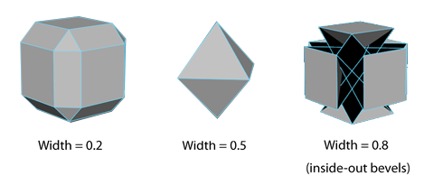 When the Offset Type is Fractional, the Width value is limited to a range between 0 to 1. When the Width value is 1, the distance will be the maximum possible (based on the shortest edge) that will not produce an inside-out bevel. A Width value greater than 1 will produce inside-out bevels.