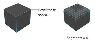 The Segments value determines the number of segments created along the edges of the beveled polygon. Use the slider or enter a value to change the number of segments. The default is 1.