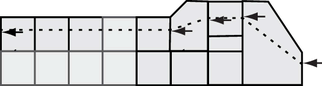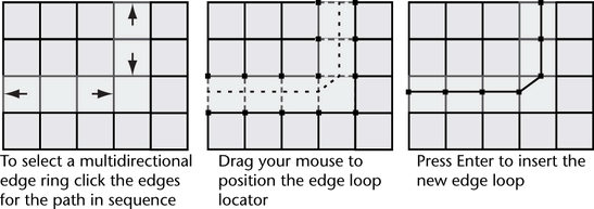 Note: You can change the direction of your edge ring selection path several times, but the path should not be constructed so that it crosses an existing area of selection. When the selection path intersects itself the edge insertion mode of the tool cannot determine where to insert an edge loop. In these situations, you need to perform multiple edge split operations.