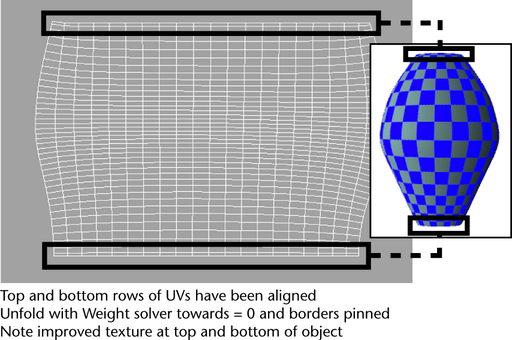 The top and bottom rows of UVs are aligned and a final unfold operation is performed with the