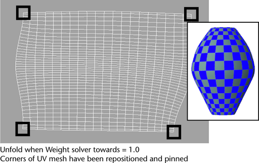 Repositioning and pinning the corners of the UV mesh and performing another unfold with the