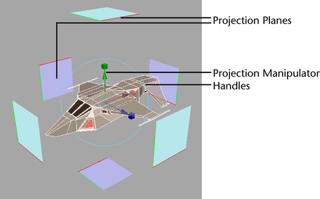 You can reset any transformations for the projection manipulator using the Channel Box. When a custom projection object is specified using the Load Projection option, the projection manipulator gets updated to reflect the planes specified by the custom projection.