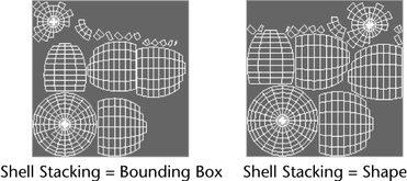 Stacks the UV shells based on the boundaries of each individual shell. The UV shells can be more tightly arranged to fit into any available spaces when this option is set.