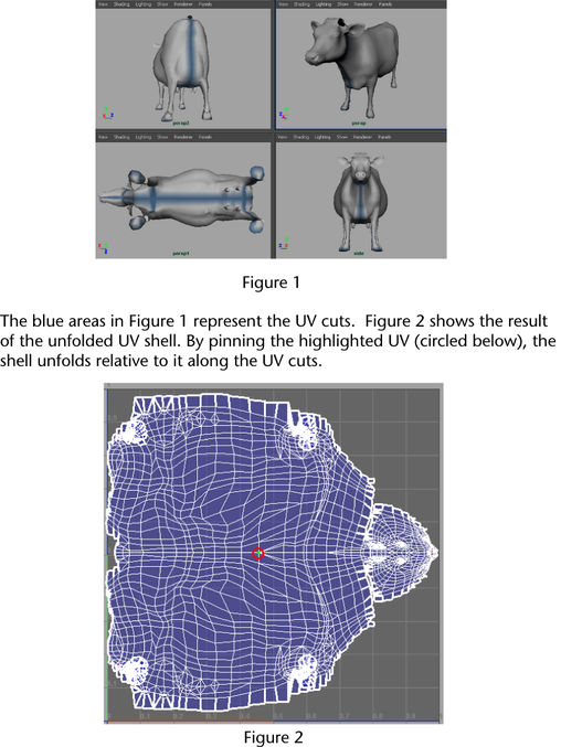 You can create UVs using any UV mapping technique. The initial shape of the UVs should be free of distortion to avoid long computations when unfolding and to facilitate UV edge selection for cuts. See Mapping UVs. |
