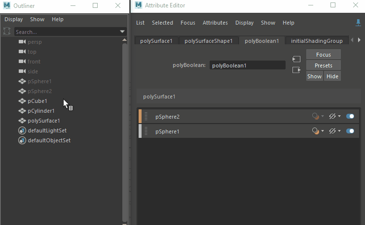 Tip: You can select multiple meshes to perform bulk edits in the Boolean stack.