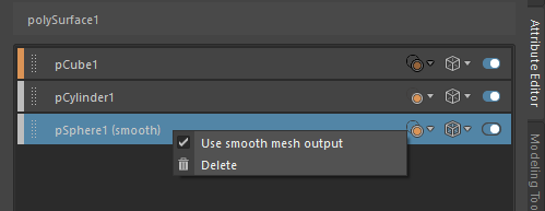 (smooth) is appended to the input object name, indicating the selected input object's smooth mesh is being used. If an input object has