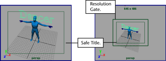 The safe title view guide represents 80% of the rendering resolution (the Resolution Gate). For example, in this image, the title DANCER does not fit within the Safe Title area. Track the scene until the title fits within the border.