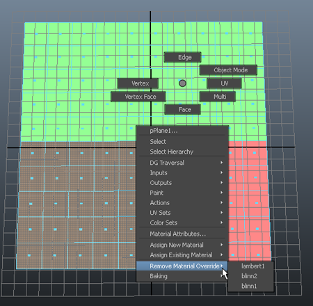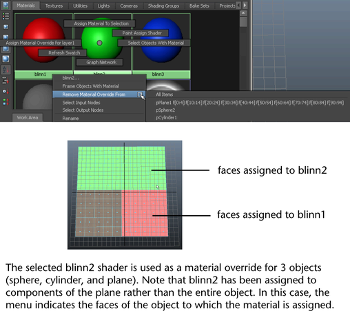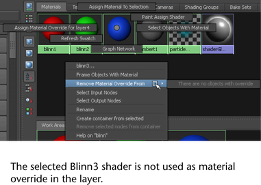 Tip: The contents of the menu are also useful if you need to query whether a material has been used as an override, or the names of the objects for which it has been assigned as an override.