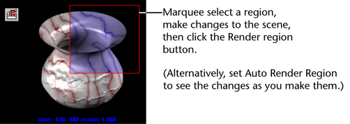 Unlike rendering at a lower resolution, a process which reduces the size of the entire image, rendering a region can help you make changes more efficiently and quickly to the specific regions of interest at full resolution.