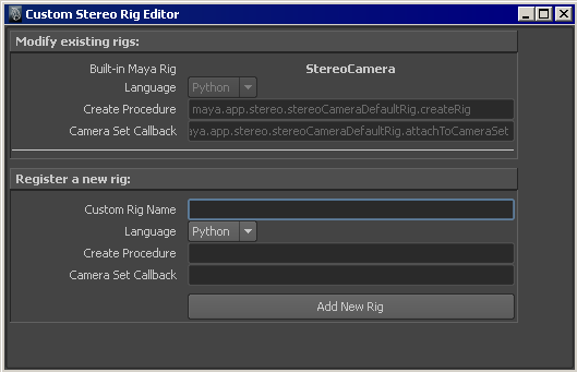 You can also register your custom rig by using the stereoRigManager command. Refer to the stereoRigManager commands documentation for examples on how to register a custom rig, query the default rig, or delete a rig using this command.