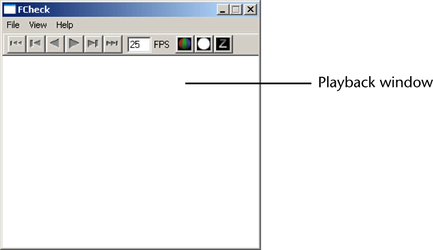 FCheck displays two windows. The FCheck Playback window displays images or sequences you open. Depending on the platform, the menu items in the Playback window are different.