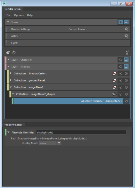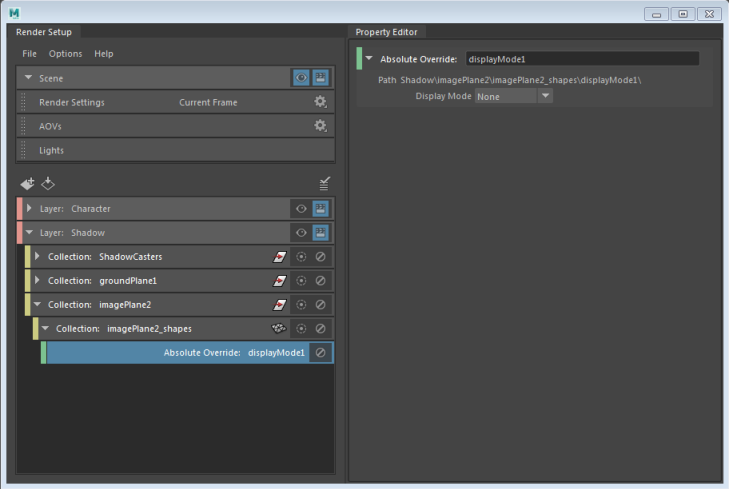 Render Setup editor allows you to create layers, collections and overrides, while the