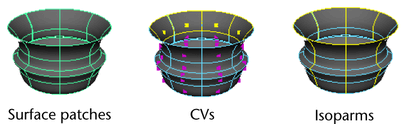 A NURBS surface is composed of one or more patches. (For more information on NURBS surfaces see Degree of NURBS curves and surfaces.) During rendering, each patch is divided into an appropriate number of triangles to approximate the true shape of the surface.