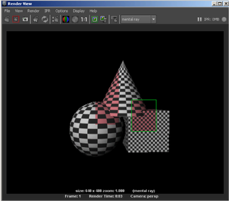 As you modify scene attributes, Maya recomputes the shading calculations and the selected region in Render View updates.