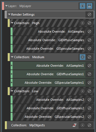 In the Render Setup editor, A Render Settings collection is created for your visible layer, as well as a corresponding override.