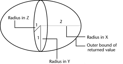vector is the radius of an ellipsoid along the X-, Y-, and Z-axis.