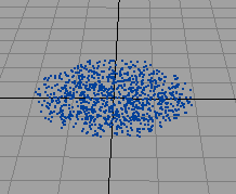 Maya executes the expression once for each particle. It gives each particle a different random position around the origin within the ellipsoid specified by <<2,1,1>>.