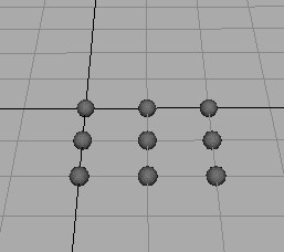 Suppose you’ve used the Particle tool to create a grid of nine particles named ColorGrid. In the Attribute Editor, you’ve set the Particle Render Type of the particles to Spheres. You’ve chosen Shading > Smooth Shade All to display the particles with shading.