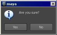 confirmDialog -message "Are you sure?" -button "Yes" -button "No" -defaultButton "Yes" -cancelButton "No" -dismissString "No";
