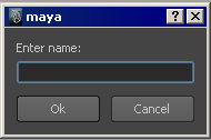 promptDialog -message "Enter name:" -button "Ok" -button "Cancel" -defaultButton "Ok" -cancelButton "Cancel" -dismissString "Cancel";